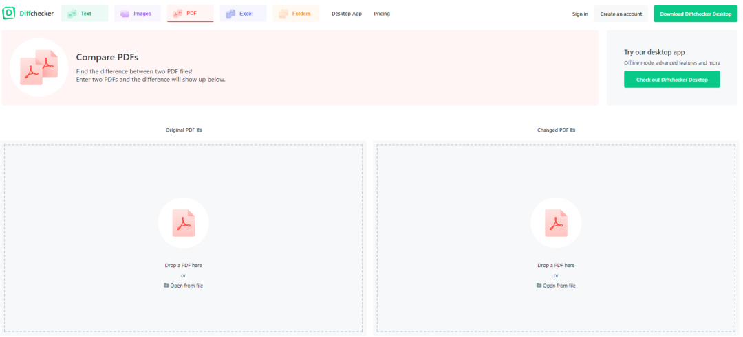 Diffchecker是一个很不错的代码差异对比工具,用过svn或者git的人对diffcheck肯定不陌生,而且它支持比对的类型比较丰富,excel、pdf支持。